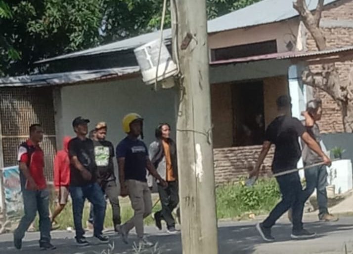 Pantauan wartawan saat dilokasi, seribuan preman mengelilingi Kampung Kompak dengan membawa klewang dan balok serta memegang batu-batu yang akan dilempari ke rumah warga.(Admin)