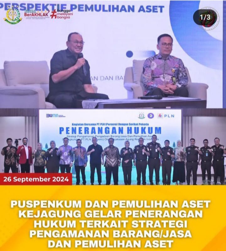 Kegiatan Penerangan Hukum “Strategi Pengamanan Barang/Jasa dan Pemulihan Aset” di Lingkungan PT PLN (Persero) menghadirkan narasumber dari Badan Pemulihan Aset Kejaksaan Agung RI Joko Yuhono, SH, MH dan Dr. Asep Kurniawan Cakraputra, SH, MH. Sementara sesi kedua diisi oleh narasumber dari Pusat Penerangan Hukum Kejaksaan Agung RI Dr. Ismaya Hera Wardanie, SH, M.Hum (Kepala Bidang Penerangan dan Penyuluhan Hukum Puspenkum Kejagung RI).