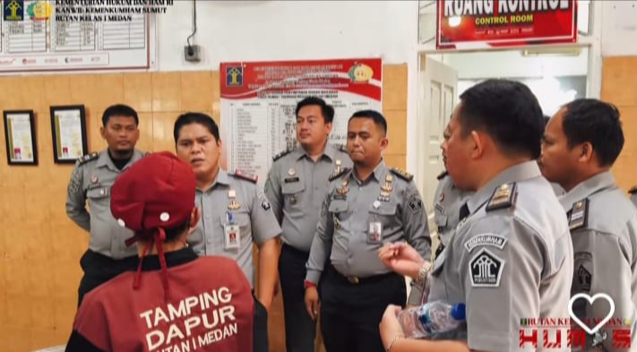 Kepala Bidang Pelayanan Tahanan, Kesehatan, Rehabilitasi, Pengelolaan Benda Sitaan, Barang Rampasan Negara, Keamanan Kanwil Kemenkumham Sumut, Kriston Napitupulu dan Tim monitoring dari Kanwil Sumut, didampingi Kepala Rutan Kelas I Medan, Alanta Imanuel Ketaren, Mytrando (KPT) beserta pejabat struktural memonitoring pelaksanaan pengelolaan Dapur Sehat Rutan Kelas I Medan.