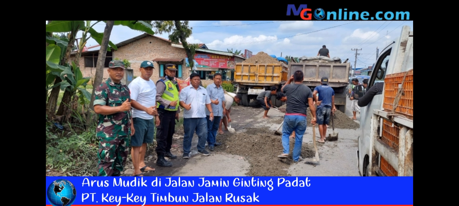 MGLOBALONLINE.COM | P. BARU Untuk mengantisipasi dan mencegah terjadinya kemacetan panjang saat memasuki arus mudik Tahun Baru 2023, keluarga besar PT. Key-Key Cahaya Gemilang menimbun jalan yang rusak di sepanjang Jalan Jamin Ginting, Kecamatan Pancur Batu, Kabupaten Deli Serdang, Rabu (28/12/22) pagi. Penimbunan dengan menggunakan bahan material jenis Base A ini dimulai dari Desa Tiang Layar, Desa Durin Simbelang, dan Desa Namoriam.