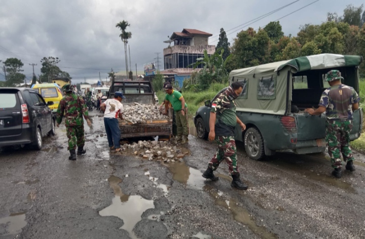 Hari ini, Rabu ( 5/4/2023) jajaran Kodim 0205/TK ambil andil guna kepedulian nya atas akses jalan nasional yang rusak tanpa kepedulian Pemerintahan setempat. Dimana personil TNI – AD Kodim 0205/TK menutup lubang dengan batu bekas.